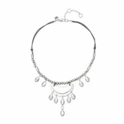 This gorgeous Bella Uno silver tone metal teardrop statement necklace is sure to catch some attention at your next event!