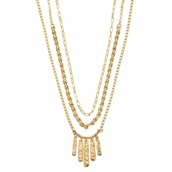 Accessorize in style with this Bella Uno Zinc Gold Tone Long Statement Layered Necklace.