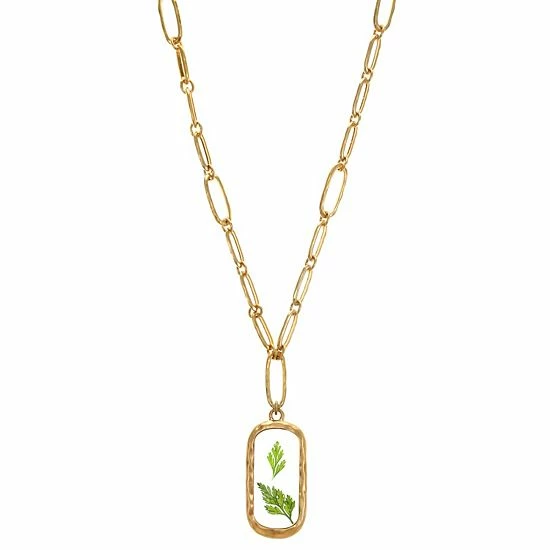 Flaunt your flower power with this Bella Uno Zinc Gold Tone Pressed Flower Fern Necklace.